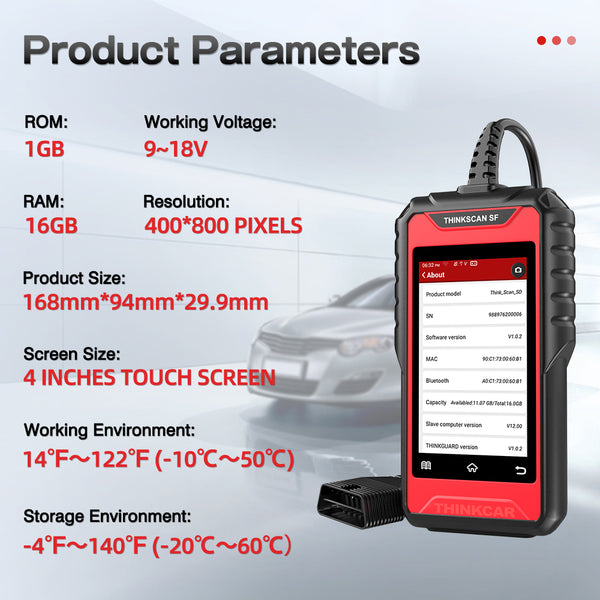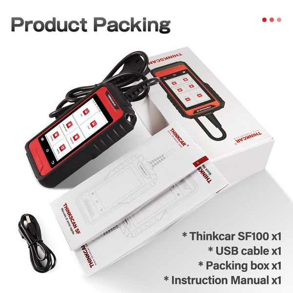 This innovative Thinkcar SF100 Scan Tool, it doesn't only have basic OBD2 Check, but also support diagnosis of ABS and airbag faults, ABS Bleeding, Oil Light Reset and Electronic Parking Brake Reset.This new scanner is just the perfect tool that DIYer and Car Owner can't wait to have.