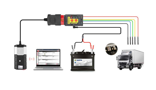 4. Connect the communication line CAN or K-line to the diagnostic interface. (Note: If it is the truck diagnostic software added by the car diagnostic equipment, you need to buy a GT106 24V to 12V adapter.)